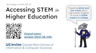 - May 03, 2025Stacy Branham, UC-Irvine and Nicholas Guidice, University of MaineSupported by: AccessComputingThe 2025 UC Irvine "Accessing STEM and Higher Education" event focused on making higher education more accessible to students with disabilities, particularly those who are blind or have low vision. Professor Stacy Branham shared her journey in accessible technology and highlighted the lack of digital accessibility courses in computer science programs. Dr. Nicholas Giudice emphasized the importance of time management, self-advocacy, and involvement in the design of accessible technology for blind students in STEM. Panelists discussed their preferred methods for representing math equations, shared experiences with accommodations and emphasized self-advocacy, independence, and the value of community support.